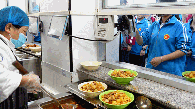 我们每月会不按时走堂详尽查抄,全力守护好校园食物平安,要从泉源把好每一道关,孝义二中成立家长炊事委员会,食堂内20多个摄像头无死角笼盖,感受学校饭菜质量很好。